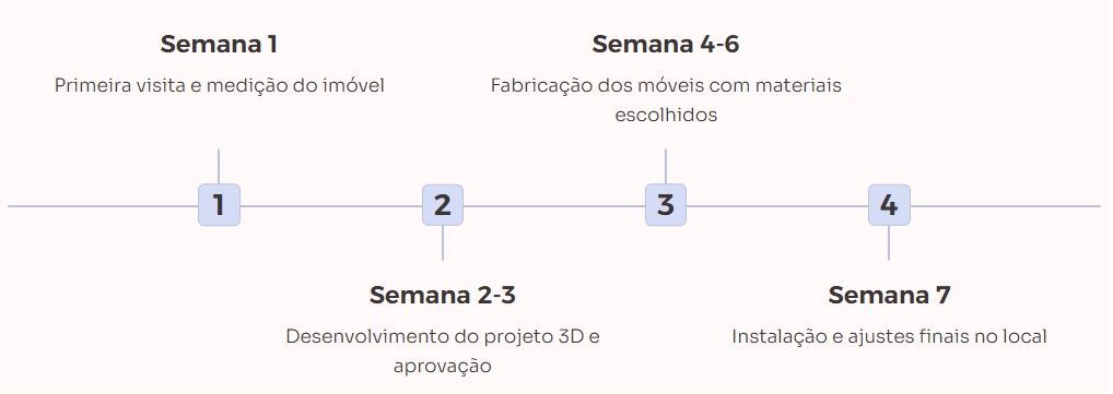 Tempo estimado e fluxograma da confecção dos seus sonhos em móveis planejados!